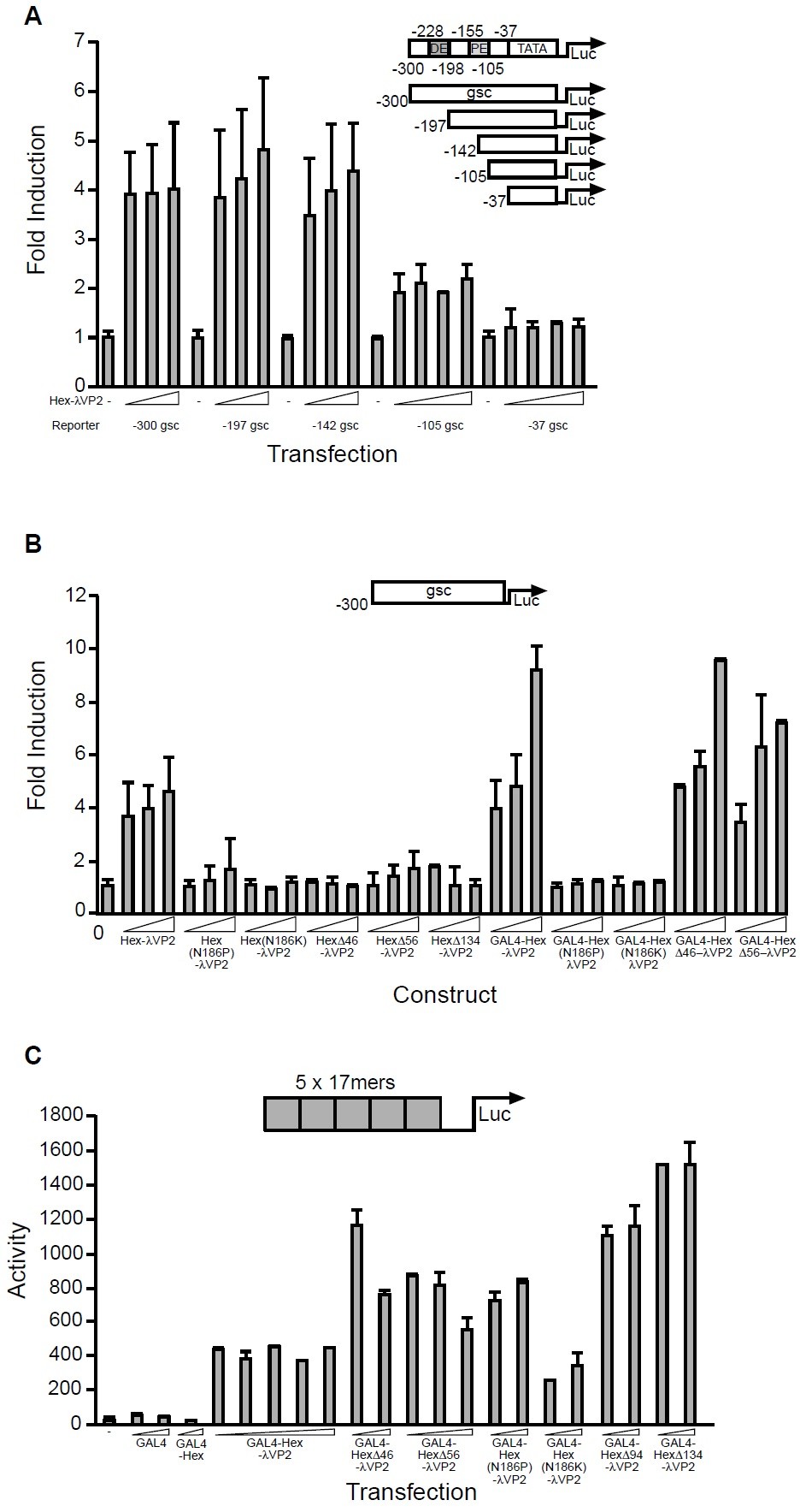 in Hex from the Gsc promoter. (C) Activity of GAL4-