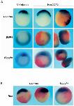throughout the dorsal side (second panel from left). In B all embryos