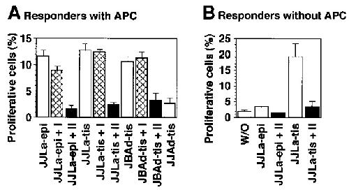 numbers to avoid possible anticipation. Proliferative responses are shown as percentages to the total number of leukocytes. Values