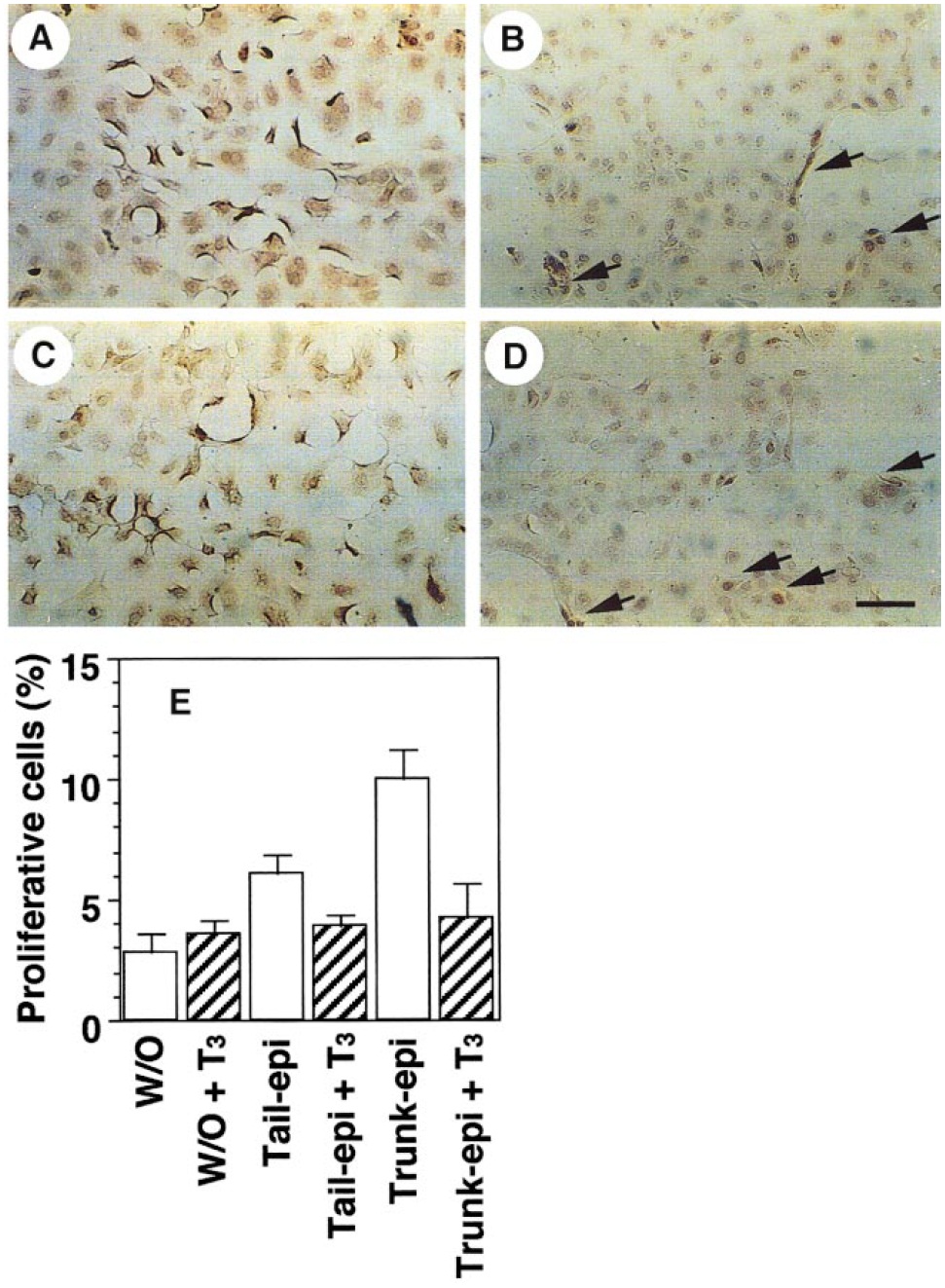 epidermal cells (Trunk-epi). Open columns represent the response to the epidermal cells cultured in the absence of hormone, and striped
