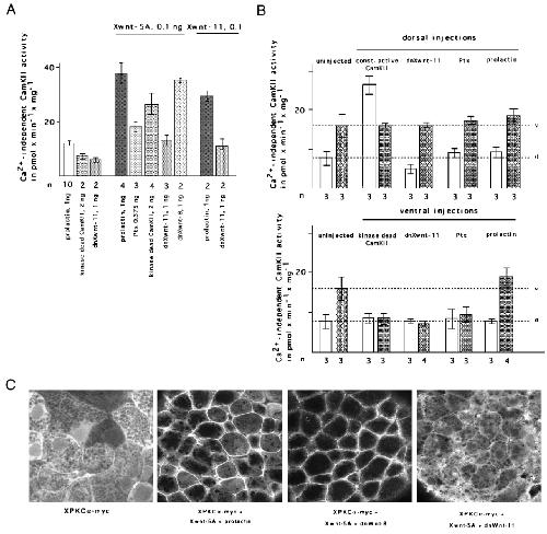 K42M), dominant negative Xwnt-11 (dnXwnt-11), and dominant negative Xwnt-8 (dnXwnt-8) RNA on Wnt induced CamKII activity. Embryos were