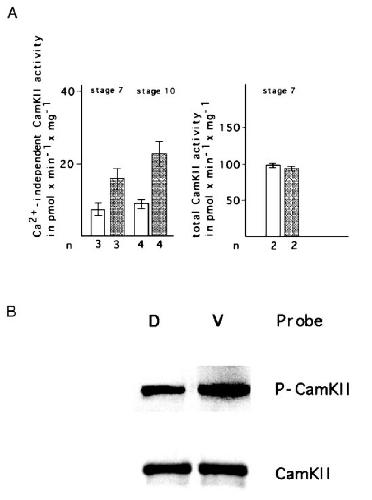 into dorsal (M) and ventral (u) halves and immediately assayed for specific CamKII activity as described in the legend to Fig. 1. Endogenous levels
