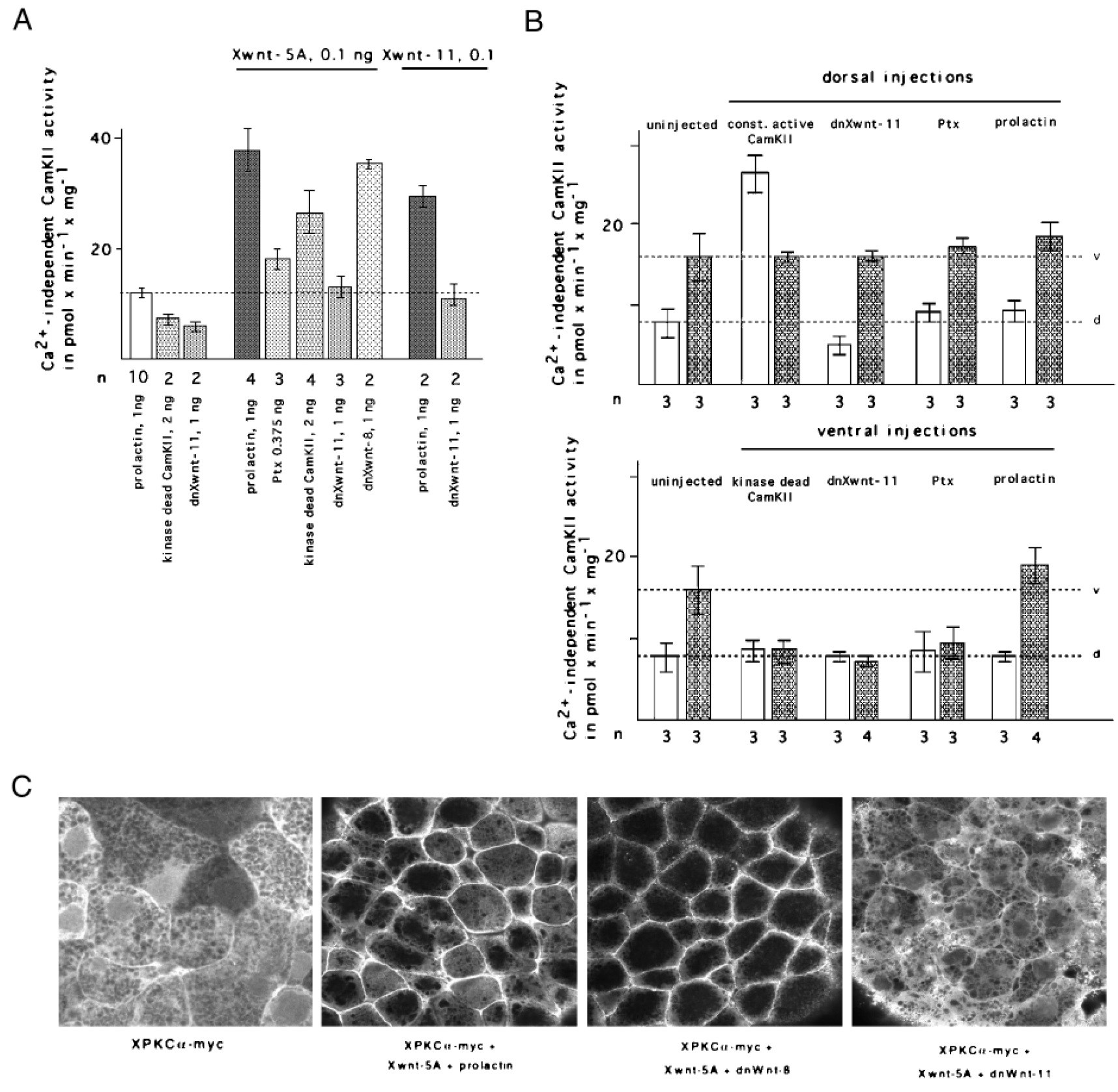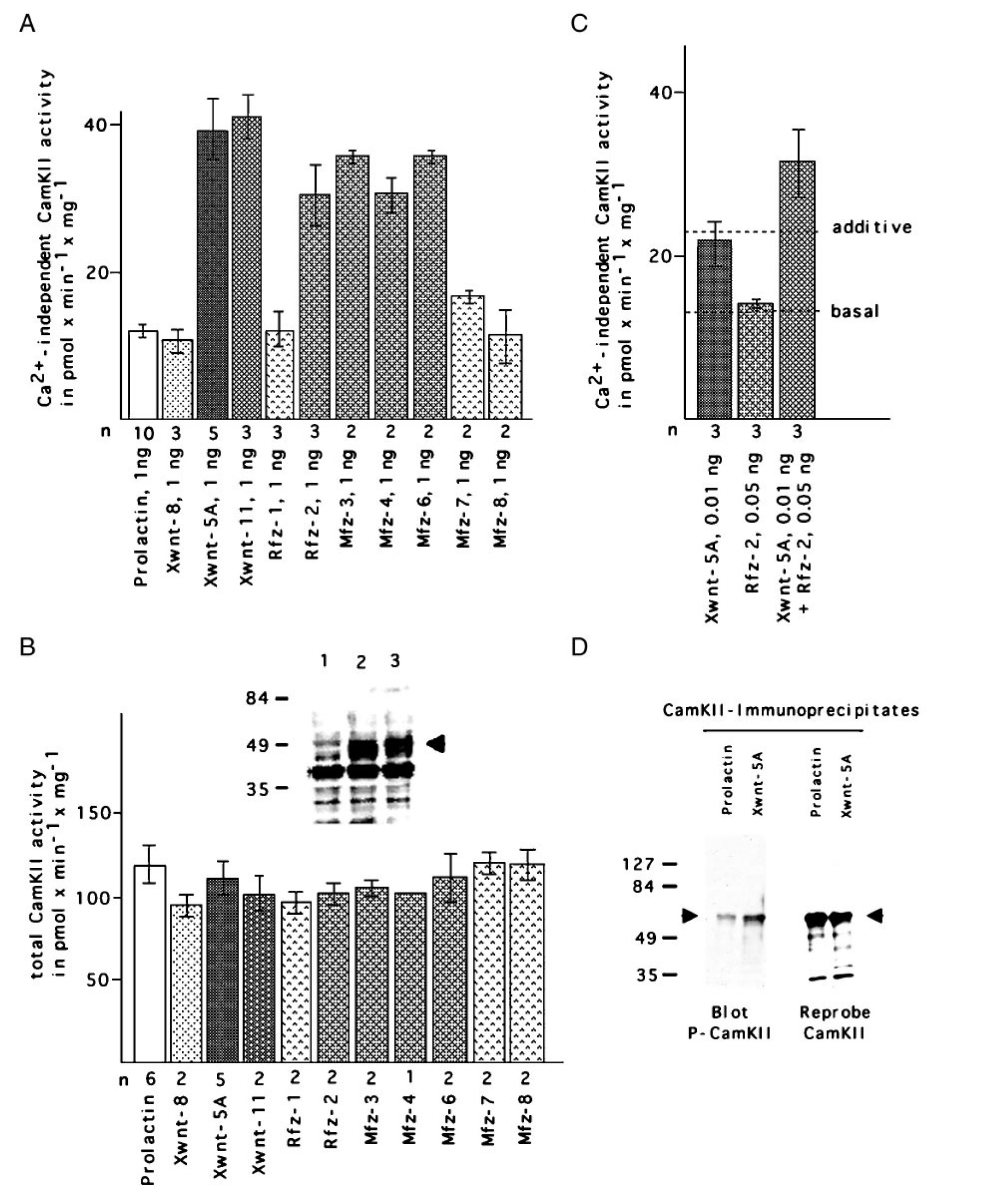 in Xwnt-5A injected embryos. Xenopus embryos were injected with prolactin or Xwnt-5A RNAs as in A, then CamKII was immunoprecipitated with