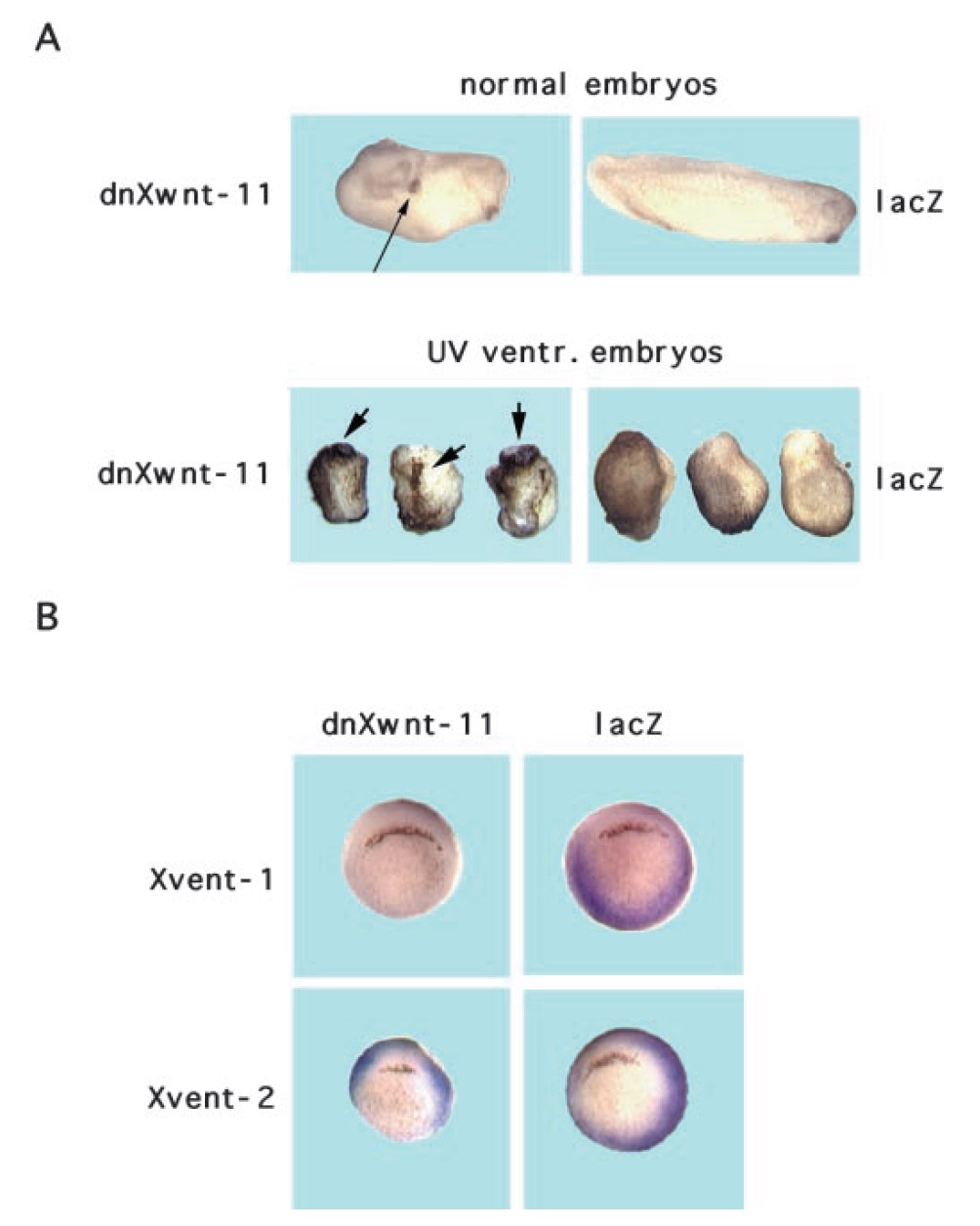 in Xenopus embryos. Panel A, embryos were cut into ventral (u)