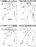 Figure 6. I-V plots for single channel inward currents of ROMK2, IRK1, Chm25, and Chm107 in the cell-attached mode. Data points and error bars for the four cations in the pipette represent means ± SEM as follows: K+ (○), NH4+ (▴), Rb+ (▵), and Tl+ (•). The dashed lines are averages of linear regressions of individual patches over the following ranges: 0 to −100 mV (K+), −60 to −160 mV (NH4+), −20 to −120 mV (Rb+ for ROMK2), −20 to −200 mV (Rb+ for IRK1), and 20 to −80 mV (Tl+). The correlation coefficients are (in the order of K, NH4, Rb, and Tl): for ROMK2: 0.997, 0.998, 0.989, and 0.991; for IRK1: 0.989, 0.988, 0.996, and 0.993; for Chm25: 0.987, 0.999, 0.987, and 0.984; for Chm107: 0.996, 0.999, 0.993, and 0.993. |