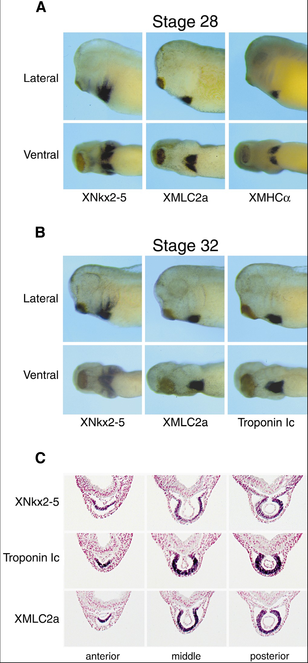 Embryos were stained for expression of XNkx2-5, XMLC-2a,
