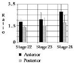 ratios increase posterior to anterior and in both regions with