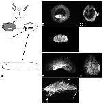 view of the embryo in B and C showing the rectangular shape and coherence of the initial graft (D). Confocal images of parasagittal (E) and