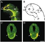 dorsally (arrowheads). Scale bar, 50 mm in B and C.