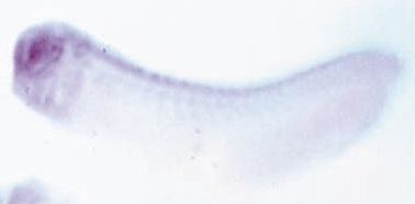 kcnab2 (potassium channel, voltage gated subfamily A regulatory beta subunit 2) gene expression in Xenopus laevis embryo, assayed via in situ hybridization, NF stage 24, lateral view, anterior left, dorsal up. |