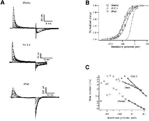 Perozo, Gating currents from a nonconducting mutant reveal open-closed conformations in Shaker K+ channels. 1993, Pubmed