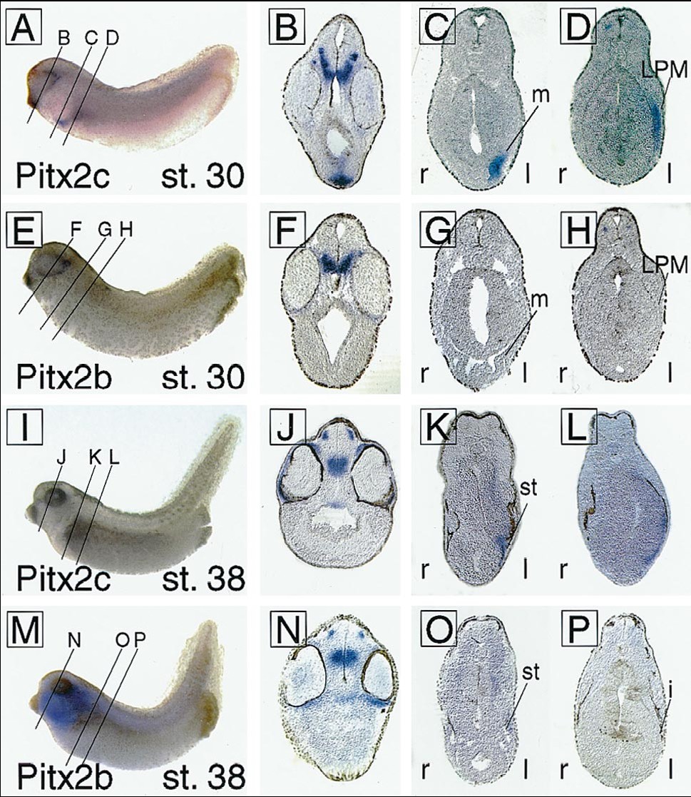 Pitx2 isoforms: involvement of Pitx2c but not Pitx2a or Pitx2b in vertebrate left-right asymmetry.