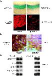 Fig. 6. The ventral portions of the somite undergo apoptotic cell death in tailbudp38-knockdown embryos. (A) Two-cell embryos were injected unilaterally into one blastomere with p38α MO (7.5 ng). Embryos were cultured to stage 25. Four embryos were transversely-sectioned and TUNEL analysis was performed followed by TRO-PRO3 staining. One sectioned embryo is shown. Similar results were obtained with all other embryos (n = 4). Cells undergoing apoptosis are stained in light blue. Approximate somite borders are schematically presented. Som. is somite and N.T is neural tube. (B) Two cell embryos (n = 5) were injected unilaterally with p38α MO (7.5 ng). Embryos were cultured to stage 31. Injected embryos were longitudinally sectioned at different dorso-ventral levels of the somites and immunostained with the 12/101 antibody (red staining) followed by TRO-PRO3 staining (blue staining). One sectioned embryo is shown. Similar results were obtained with all other embryos (n = 5). (C) Embryos were injected with p38α MO. Embryos were fixed and taken for whole-mount in situ hybridization to pax3 and muscle actin. Arrows point at migrating muscle progenitor cells. Embryos were injected with p38α MO and cultured to stage 46. Whole embryos were fixed, immunostained with the 12/101 antibody and analyzed by light microscopy. Arrows point at muscle cells (lower panel).