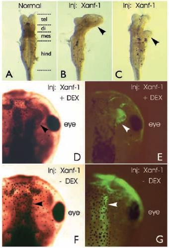 Fig. 6. Exogenous Xanf-1 can impose telencephalic identity on cells