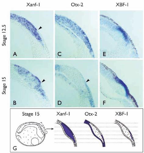 outgrowth. (C) In contrast, no expression of XBF-1 is seen in the