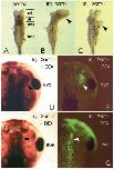 mesencephalic (C) outgrowths (arrowheads) developed in embryos