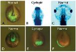 Fig. 7. (A,B). The cyclopic phenotype, characterised by eye fusion
