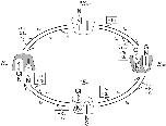 Figure 16. Simulation of GAT1-mediated membrane capacitance changes with application of cytoplasmic Cl−. Measured and predicted capacitance changes on application of cytoplasmic Cl− in the absence of cosubstrates (•), in the presence of 120 mM cytoplasmic Na+ (○), and in the presence of 120 mM cytoplasmic Na+ and 20 mM GABA (▪). |
