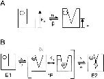 Figure 2. Hypothetical mechanisms of GAT1 electrogenicity. (A) Binding site opening reaction of an empty transporter. It is assumed that opening of the binding site changes the membrane potential profile across the transporter, such that the membrane electrical field moves across the charged binding site. The charge of the binding site, while open, remains outside the electrical field. Therefore, the binding site opening rate (α) will be more strongly voltage dependent than the closure rate (β). (B) Hypothetical mechanism of electrogenicity during Na+o occlusion by the GAT1 transporter. In the E1 state, binding sites are closed to the extracellular side. When they open, one Na+ can bind in the *E state, and the transporter binding sites close to the E2 state with an occluded Na+. In the opening reaction, the membrane field moves partially across the negatively charged binding site, and in the closing reaction, the membrane field moves in the opposite direction across the bound Na+. See text for further explanations. |