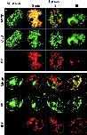 Figure 6. Hamster RPA does not assemble into detergent-resistant pre-RC foci during early G1-phase and associates transiently with chromosomal domains at the specific time of S-phase when they replicate. The association of RPA (red), with earliest-replicating (CldU, green, A) or late-replicating (IdU, green, B) chromatin regions was examined in aliquots of the cells used in Fig. 2. Immunolabeling was performed as in Fig. 2.