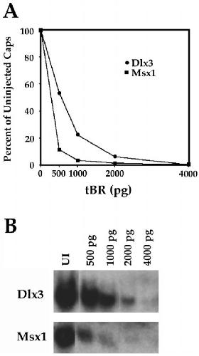 encoding tBR, Msx1, and Dlx3. Animal caps were removed from