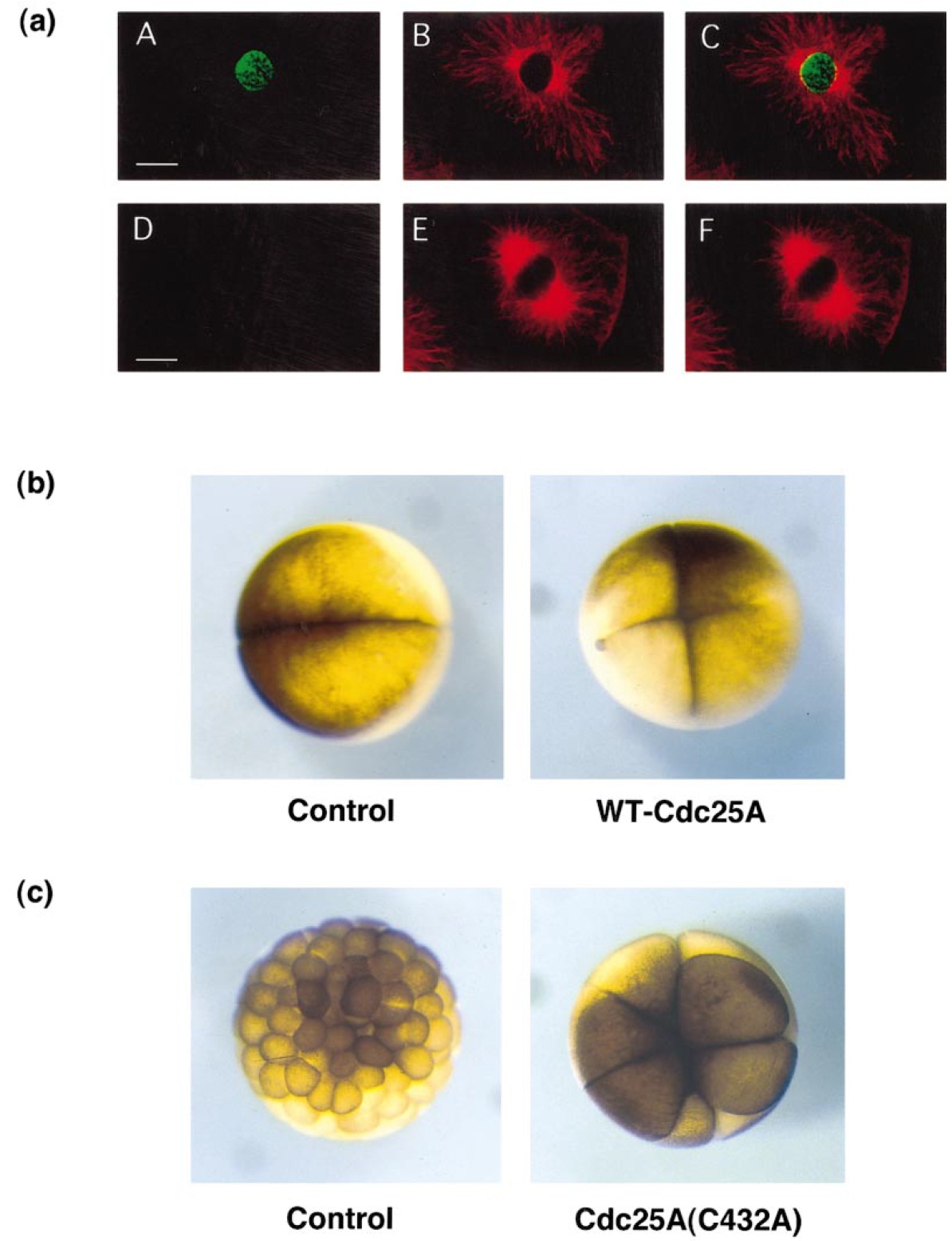 Cdc25A (C432A) protein or buffer was injected into one-cell embryos as in (b) and photographed when the buffer-injected embryos reached