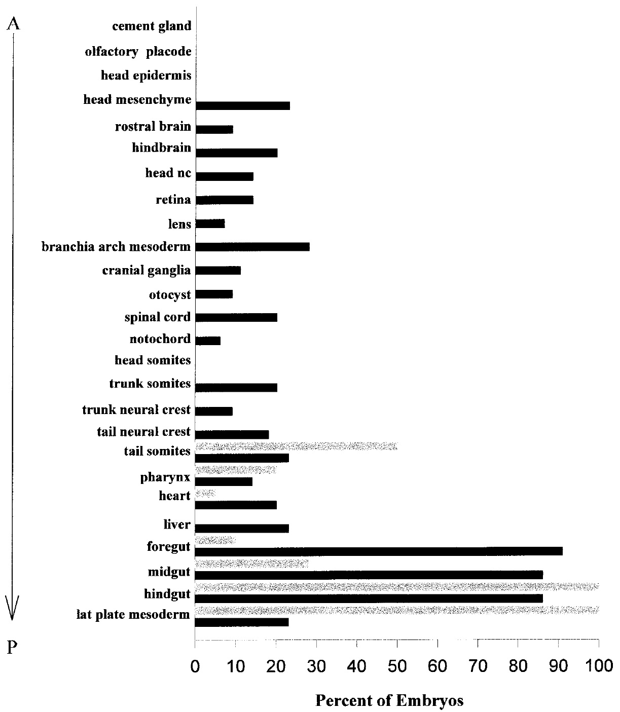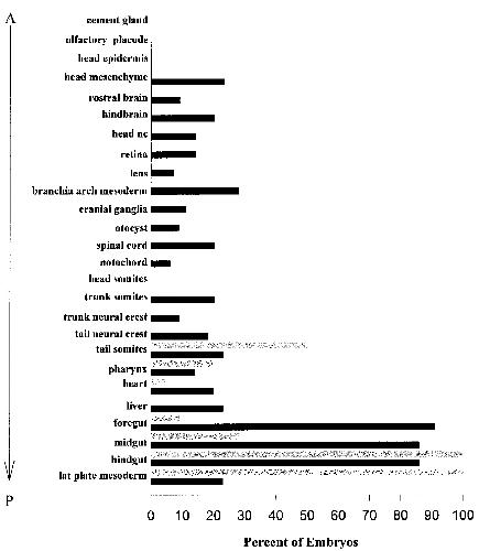 tissues including retina and other CNS derivatives. All but the most anterior tissues (i.e., cement gland, olfactory placode) contain some
