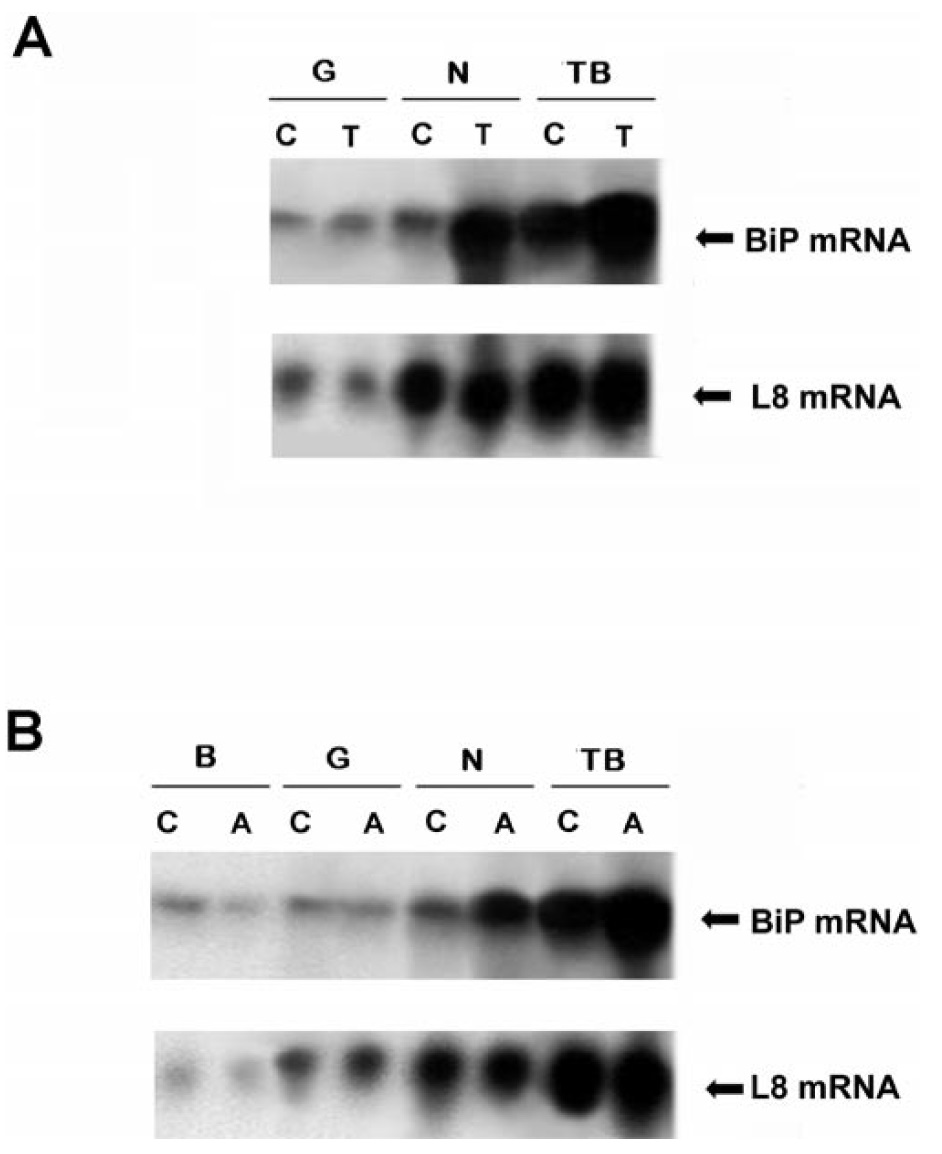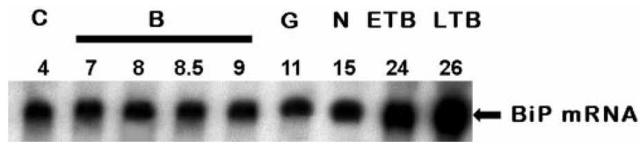 employing the [32P]-labeled BiP cDNA clone. The same RNA blot was
