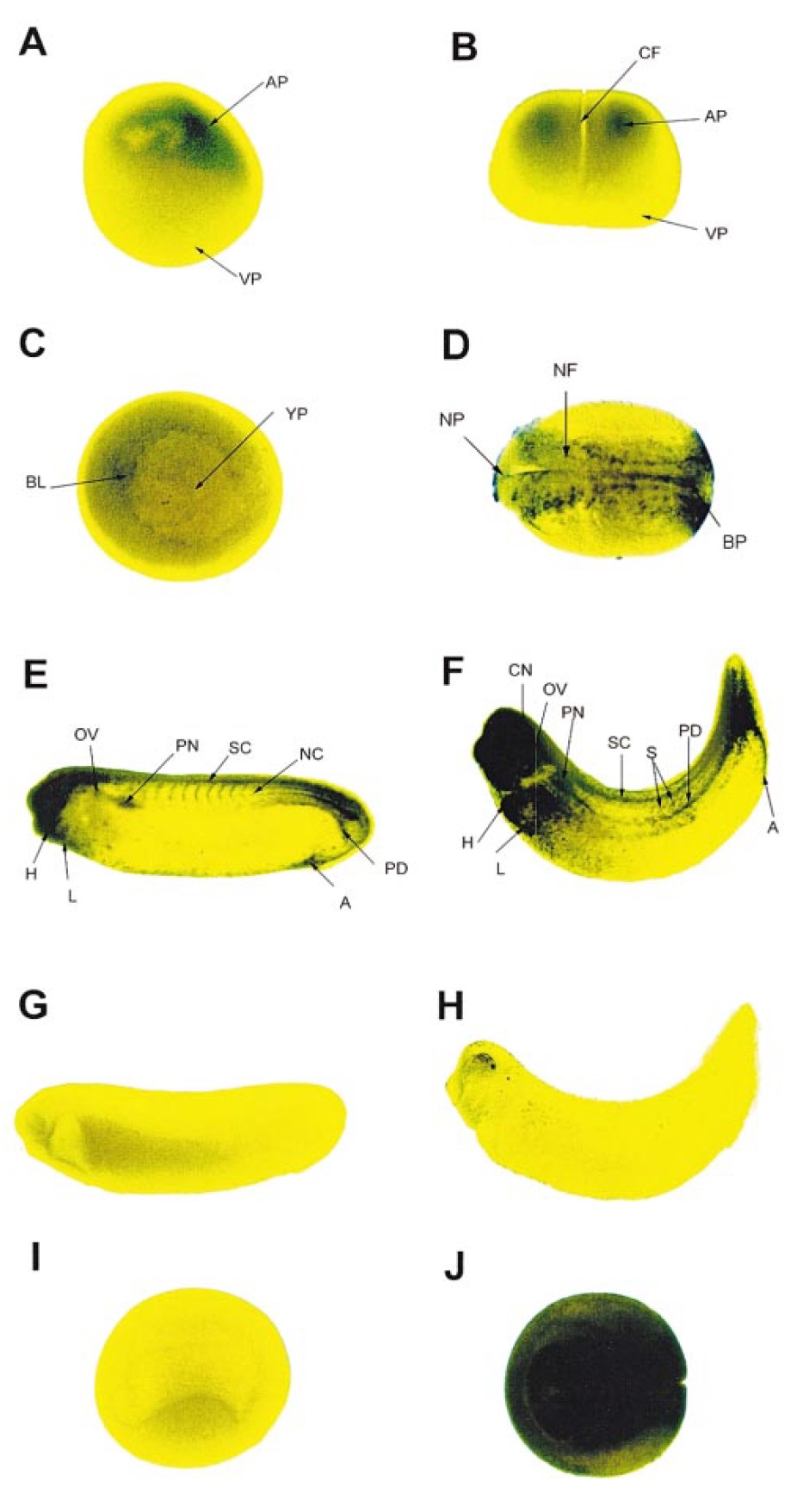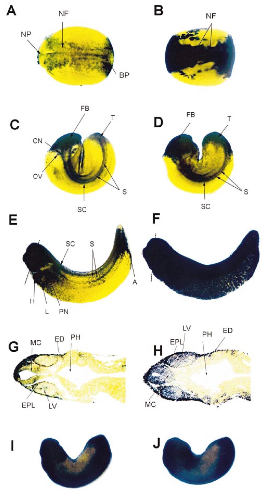 riboprobe. Panels I and J represent neurula stage embryos (stage 18)