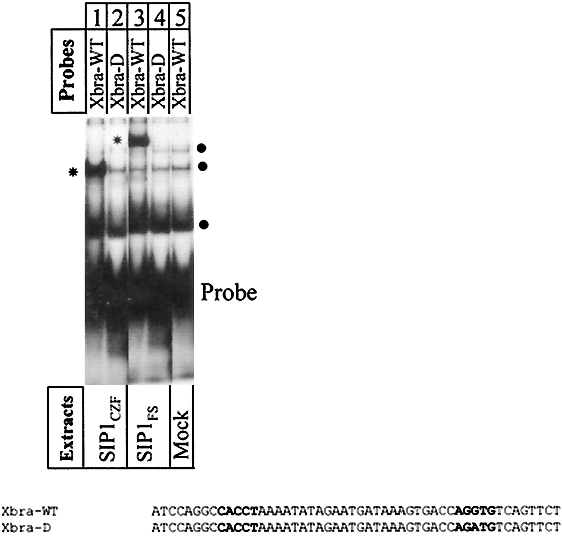 Xbra SIP1 probes (WT or D) were incubated with extracts from COS1