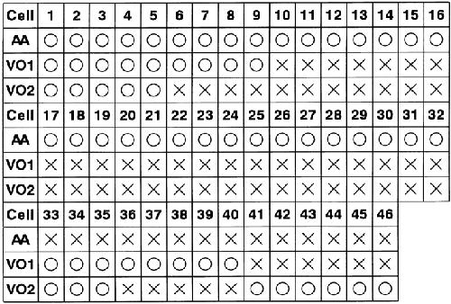 Figure 5. Response profile of single olfactory neurons to various odorants as obtained by the whole-cell clamp technique. The ○ and × indicate an inward current and no current, respectively, upon the application of odorants.
