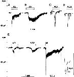 Figure 4. Inward currents in response to the amino acid cocktail (A and B). Inward currents in response to volatile odorant cocktail I (C) and cocktail II (D). All responses were recorded from different neurons (A∼D). (E) Inward currents in response to volatile odorant cocktail I, volatile odorant cocktail II, and the amino acid cocktail, respectively. The same inward current in response to the amino acid cocktail was shown with a short time scale in inset. All responses were recorded from the same neuron (E). The holding potential was −70 mV.