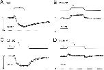 Figure 4. Temperature dependence of macroscopic current. The temperatures T1 and T2 were (°C): (A) Wild-type ClC-0, 22.0 and 28.7 . All current values were normalized to the amplitude of the first data point and the dotted lines represent the zero-current level. |