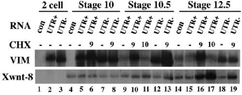 Fig. 9. UTR-mediated degradation of endogenous Xwnt-8 transcripts
