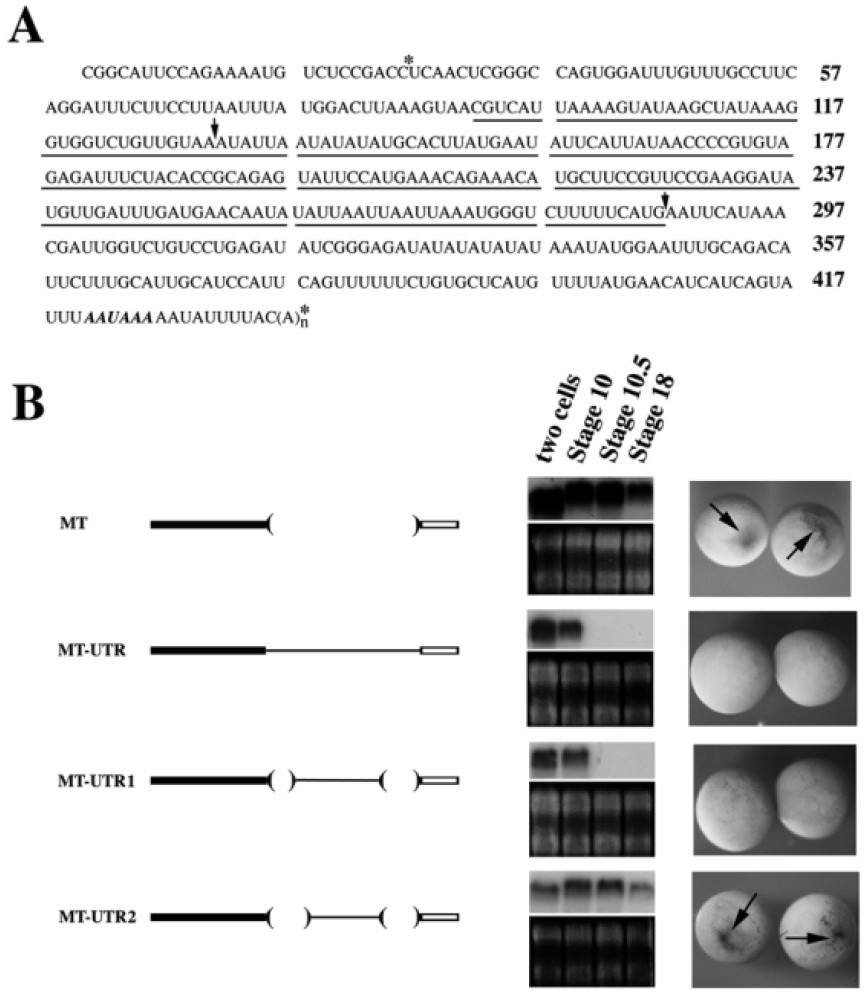 probe. (B) MT-UTR1 or MT-UTR2 transcripts were injected into