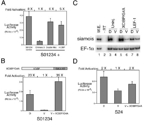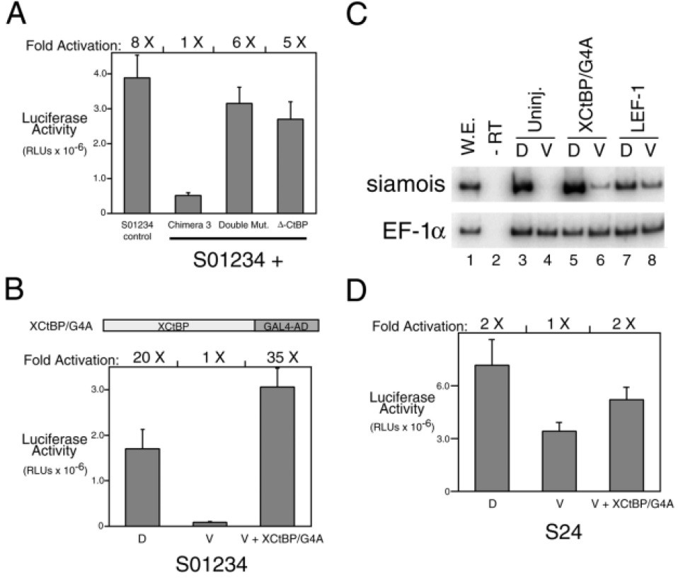(lane 8) embryos. (D) The activation of siamois by XCtBP/G4A is mediated