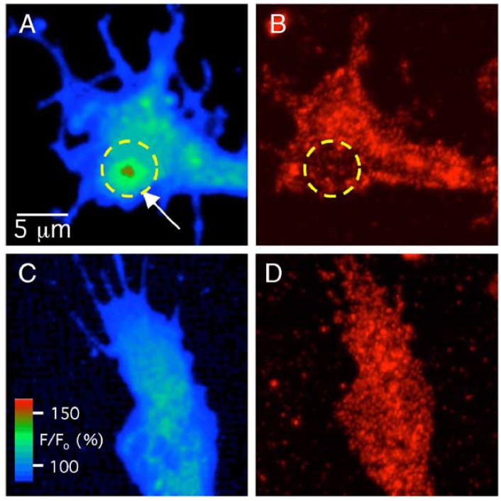 obtained from 5 of 5 cells. (C) Surface plot of fluo-4 fluorescence in another