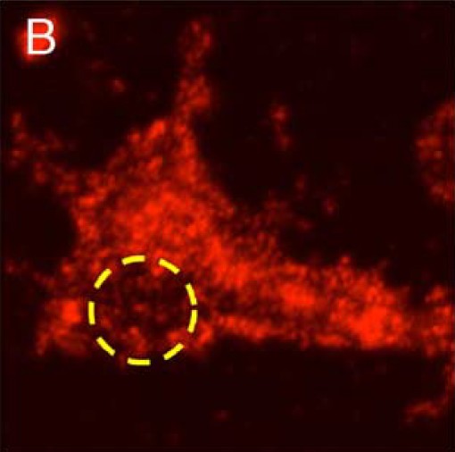Fig. 5. pFAK immunoreactivity colocalization with focal complexes in lamellipodia. (A, B) Images of the growth cone of a cultured neuron fixed and stained for