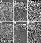 Figure 2. Improved visualization of actin filament branching in lamellipodia. EM of keratocyte or fibroblast lamellipodial actin network after CD treatment (a and b, 0.2 μM for 30 min or 0.5 μM for 10 min), 1 min recovery from serum starvation of a mouse fibroblast (c), LA treatment (0.2 μM for 10 min), or unprotected extraction (d). All examples demonstrate frequent branching of actin filaments. Bars, 0.1 μm; b and d are shown at the same magnification as c. |