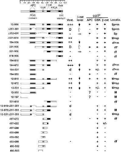Hsu, Identification of a domain of Axin that binds to the serine/threonine protein phosphatase 2A and a self-binding domain. 1999, Pubmed