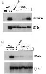 FIG 7. XHex can induce the expression of cerberus. The interre- lationship between XHex and cerberus expression was assayed by the injection of synthetic mRNA encoding either XHex (10, 100, 250 pg) or Cerberus (10, 100, 250 pg) into each ventral blastomere at the 4-cell stage, similar to the experimental design of Fig. 4. At stage 10.5, ventral endoderm tissue was explanted and assayed by RT-PCR for the expression of the other gene. XHex can induce cerberus, but Cerberus cannot induce XHex at the doses tested. Stage 10.5 whole-embryo (WE) controls of cDNA with or without reverse transcriptase (+RT, -RT) are shown. |