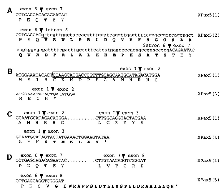 splice donor normally used is underlined. B: Xenopus Pax-5(3) is