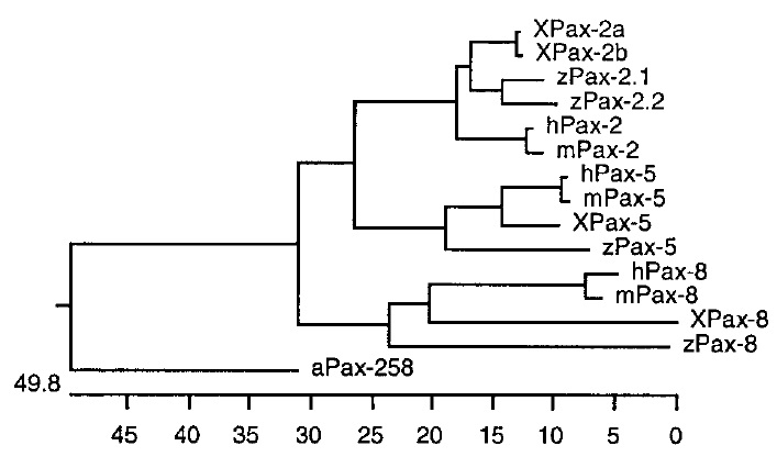 Fig. 4. Phylogenetic analysis of the chordate Pax-2/5/8 gene