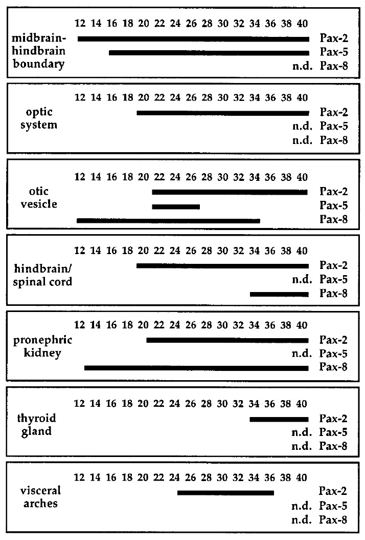 Pax-2/5/8 gene family during Xenopus embryogenesis. The duration