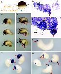 64-cell stage, and were stained with the RedGal substrate then immunostained at stage 10. Immunostain signal (purple) was detected at the