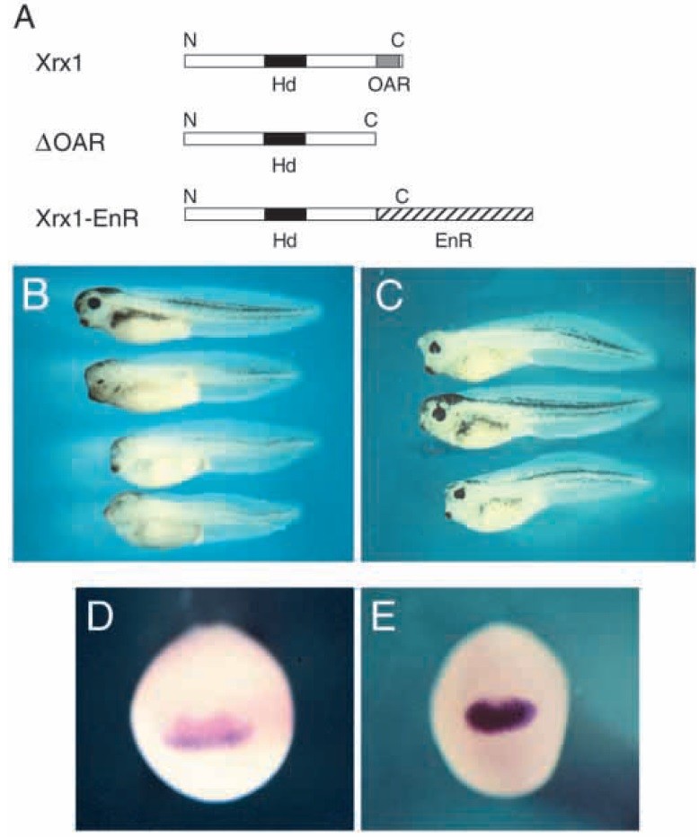 Xrx1-EnR phenotypes. Embryos were coinjected with 400 pg of