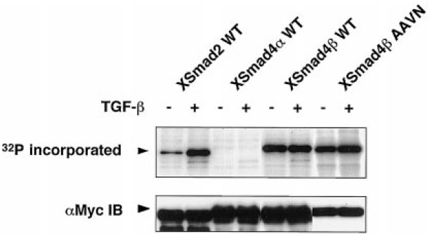 mutated version of XSmad4b (AAVN). Cells were metabolically labeled