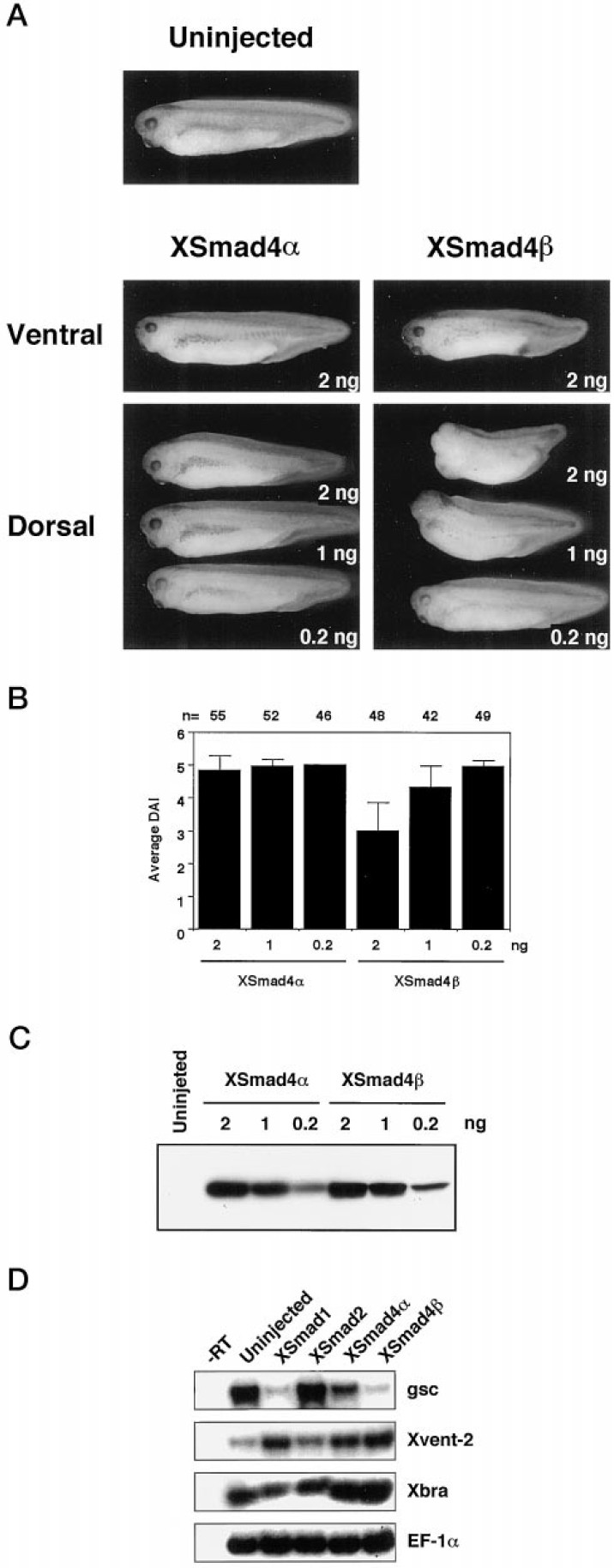 with XSmad4a mRNA or XSmad4b mRNA at the indicated doses. The