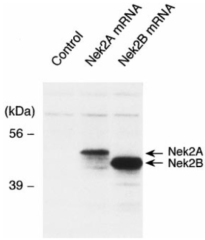 Nek2B proteins. Either 1 mg of Nek2A mRNA or 1 mg of Nek2B