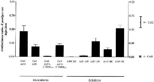 Haubrich, Incompatibility of connexin 40 and 43 Hemichannels in gap junctions between mammalian cells is determined by intracellular domains. 1996, Pubmed